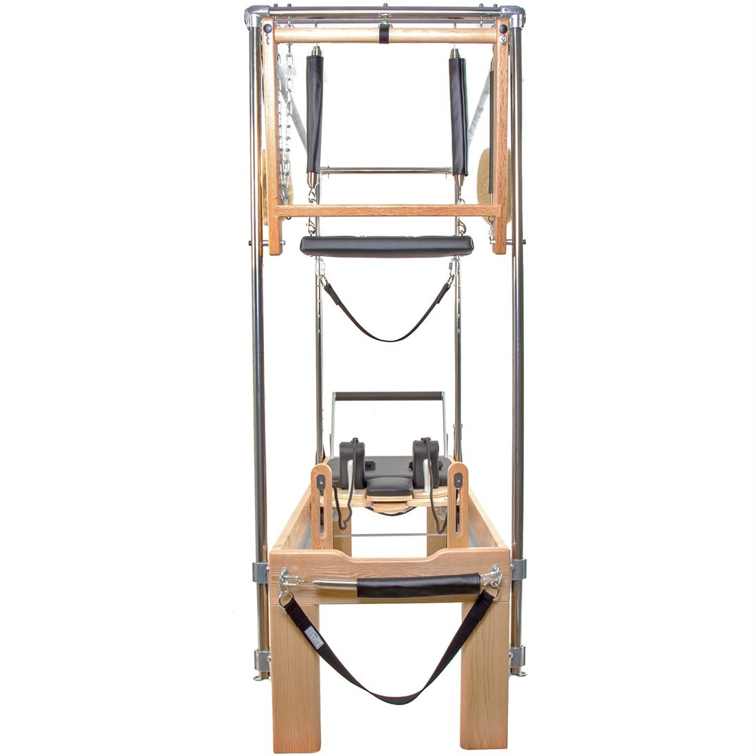 A Cadillac és a Reformer kombinációjával egy felhasználóbarát rendszert hoztunk létre, amely hihetetlenül sokoldalú, és könnyedén vált mindkét üzemmód között. Kézzel készített váz tömörfa szerkezettel, tölgy vagy bükkfa kivitelben, fekete kárpitozással, valamint kötél- és emelőcsomaggal felszerelve.